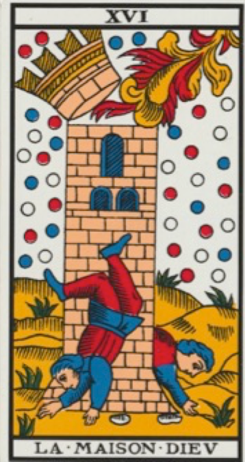 La tour de La Maison Dieu, métaphore de ton propre être et corps, s'apparente à celles d'un château te servant de protection contre les menaces extérieures. Psychologiquement, elle symbolise donc les barrières que tu construis pour éviter de souffrir. Les briques de cette tour représentent tes connaissances et expériences qui peuvent parfois t'isoler. Cette lame indique la nécessité de te libérer de tes anciennes croyances pour avancer.